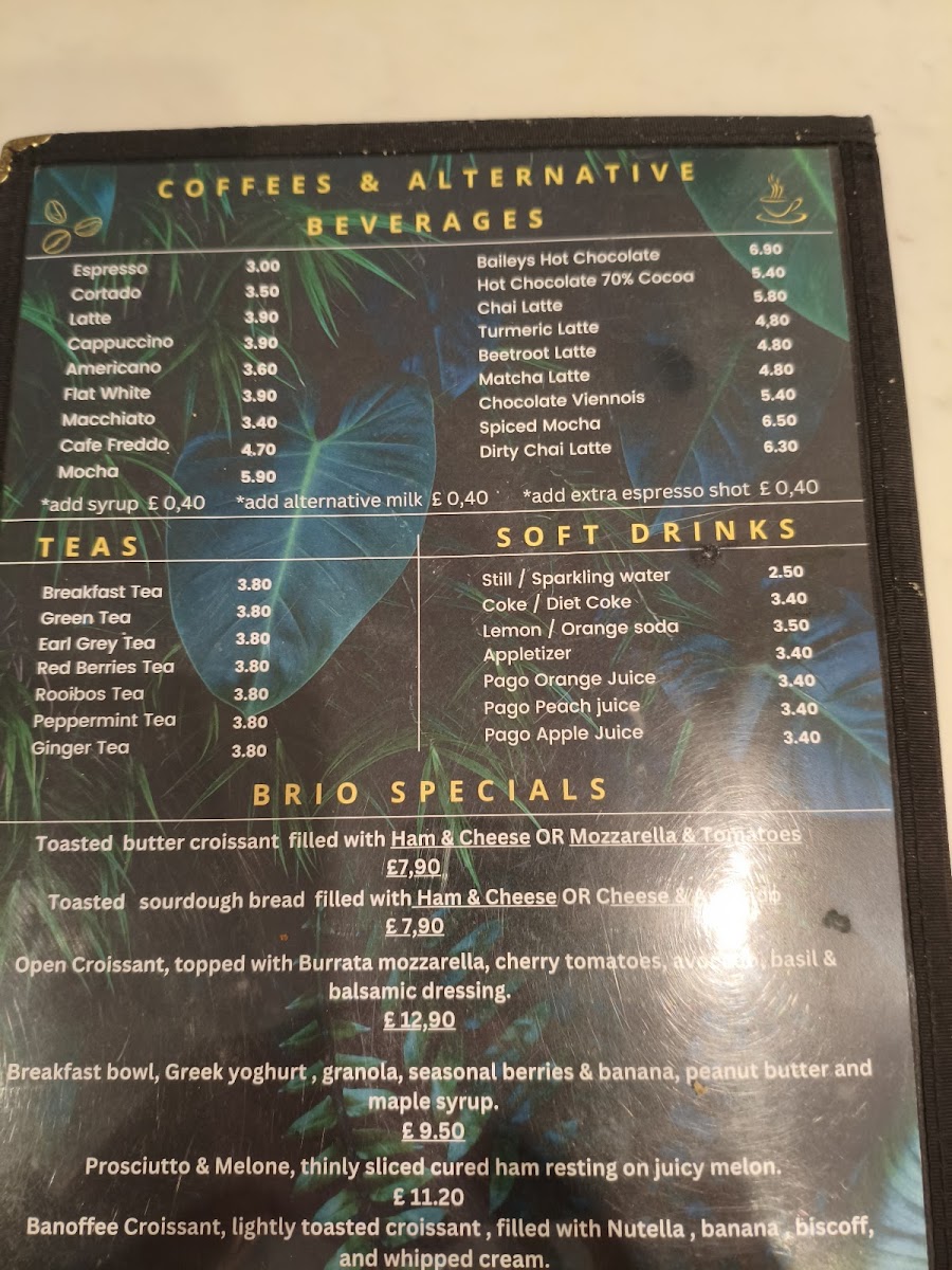 Brio Cafe specializes in an array of hot and iced coffee drinks, with multi-textured options that are perfect for both a morning boost or a refreshing afternoon treat. The Espresso is a standout, delivering a rich, full-bodied experience for just £2.00, while the Cappuccino brings velvety froth and a hug-in-a-cup feel for £2.90. For those looking to cool down, the Freddo Cappuccino and the creamy Affogato are irresistible at £3.50 and £4.00 respectively. The milkshakes are also a highlight, crafted with freshly made ice cream that you can customize with your favorite flavors for just £5.50. As one happy customer, Kristina Sto, described, “The staff are wonderful and it’s the best cosy cafe that also serves lovely food.”